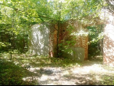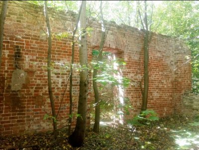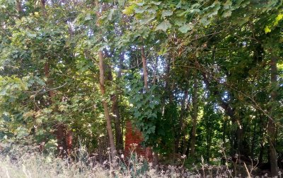 Фото. Остатки кирпичной ограды бывшего барского сада. Август 2020. Дубровка.
