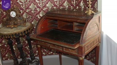 Это бюро в стиле жакоб и бюро с маркетри, отделанное бронзой. Некоторые предметы мебели представляют собой уникальные произведения декоративно-прикладного искусства. Лучшие экспонаты были представлены в только что открытой экспозиции музея, и на сегодняшний день занимают почетное место.