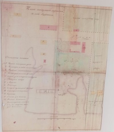 Фото. План господским строениям в селе Дубровках. ХIX век. Бумага, тушь. Касимовский краеведческий музей.