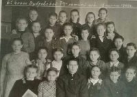 Фото из семейного альбома Щербаковой Л.С. Дубровская школа. 1949 год. Александра Михалева вв втором ряду снизу справа от учителя.