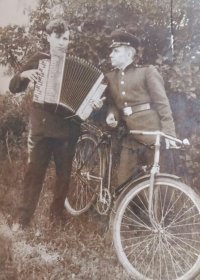 Фото. Борис с гармонью и его брат Анатолий Михалевы. Дубровка.