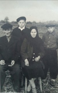 Во время войны, когда папа был на трудовом фронте, мы жили одни с мамой. У нас был старший брат, он женился потом, и в Полтавку ушел жить. Мы одни остались, мал мала меньше. Есть было нечего. Хорошо, что у мамы брат жил на Старом селе, Василий Иванович Казанцев. Они зажиточные были. В другой части дома жил его брат, Иван Иванович Казанцев. Моя мама родилась в этом доме, пока мой папа не взял ее к себе в свой дом на Новое село. Папа там сам построил деревянный дом, но амбар у нас был кирпичный. Выживали, как могли. Мама сходит на Старое село к этим богатым, они богатенькими считались, смотришь, принесла нам головы рыбьи, хвосты, сварит супчику, и Слава Богу. А Василий Иванович в рыболовецкой бригаде работал. С утра мы вставали и сажали на огороде картошку, моркошку, огурчики, помидорчики. Но они не вызревали. Мы их зелеными съедали. Картошкой питались. Потом, когда папа пришел, он начал работать в полеводческой бригаде, и там им давали за трудодни зерно, вот тогда мы хлебушек кушать начали. Весной, как оттаивала земля, мы идем, берем корзинку, ведро, и идем копать эту мерзлую картошку, и ее-то запрещали собирать. Мы втихаря ее приносили домой, потом мыли, потом сушили, потом толкли, и мама готовила. Как только весна начиналась, мы траву, конский щавель, наш щавель, мы его шелушили, в общем, все ели, что могли, ели. А потом подножный корм – щавель, дикий лук, все собирали и ели. Голодные были. Не хочу даже вспоминать про это.