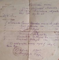Фото из семейного альбома Щербаковой Л.С. Семейный список гр-на с. Дубровка Михалева Федора Петровича от 23.10.1937 года за подписью председателя сельсовета и секретаря Гуровой?