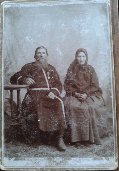 Фото из семейного альбома Прошляковой А.В. Губанихины Никита Кузьмич 67 лет и его жена Мария Трофимовна 66 лет. 15 сентября 1913 года. Снимок сделан на память своим детям и внукам.
