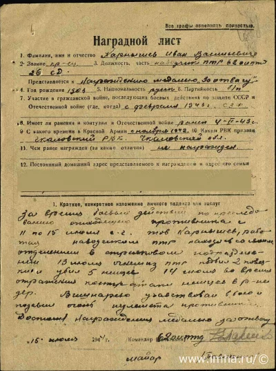 (Корнешов Иван Васильевич. Рядовой. __.__.1903 , Место службы: Кировский РВК, Чкаловская обл., г. Чкалов, Кировский р-н. ВПП и ЗП/Электронный сайт https://pamyat-naroda.ru)