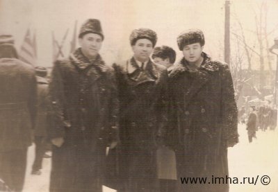 Фото. Будущие академики: Тимакин Николай Петрович и Карпов Ростислав Сергеевич на демонстрации 7 ноября 1971 года. Томск