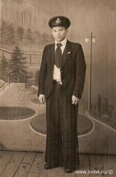 Фото из семейного альбома Тимакина Н.П. Тимакин Николай в капитанской фуражке. 1951 год. Южно-Сахалинск.