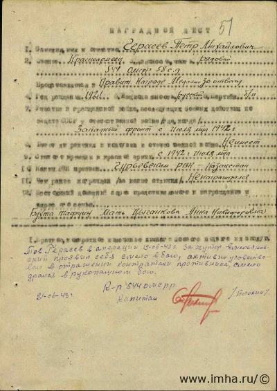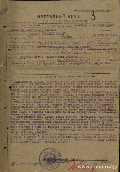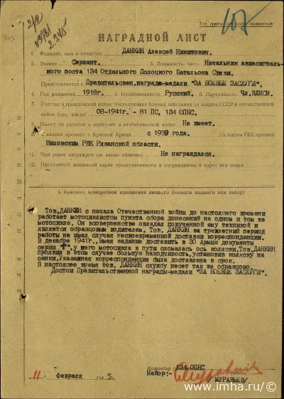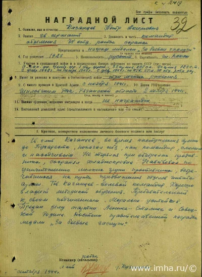 Фото документа " Описание подвига"/https://pamyat-naroda.su/awards