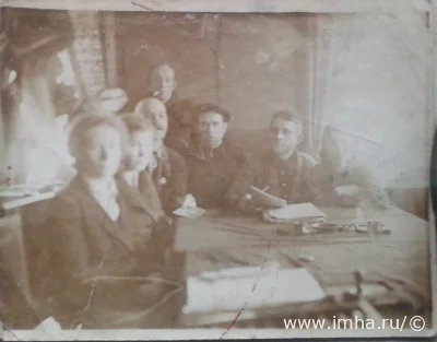 Фото из семейного альбома Луниной Т.Н. Шилово. Дом Петра Акимовича Лунина и Клавдии Алексеевны. Слева сидит Екатерина Михайловна Лунина. Петр Акимович не воевал и был освобожден по здоровью. Бабушка Катя умерла в июле 1960 года в возрасте 86 лет.
