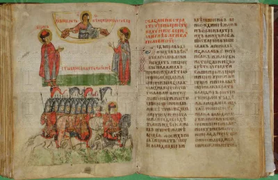 Миниатюра «Сказания о святых Борисе и Глебе» в Сильвестровском сборнике.
