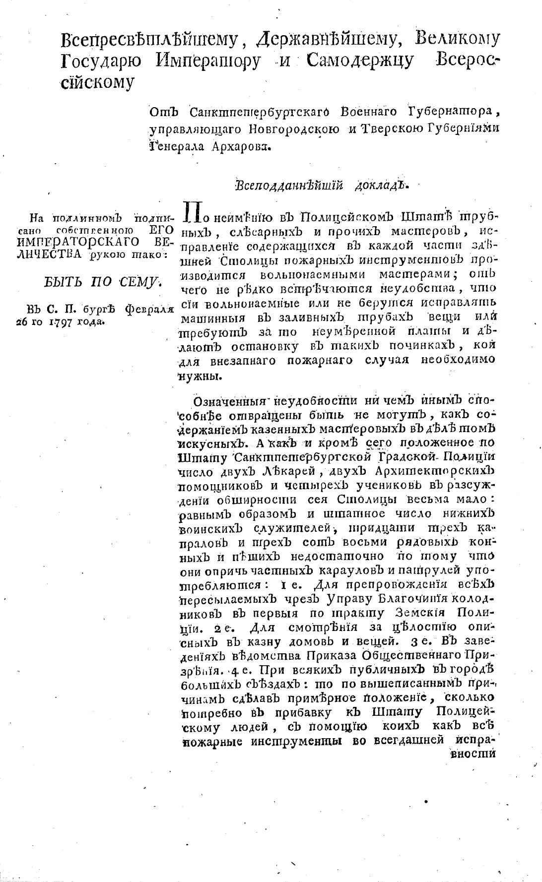 О необходимости прибавки служителей к санктпетербургскому полицейскому штату.