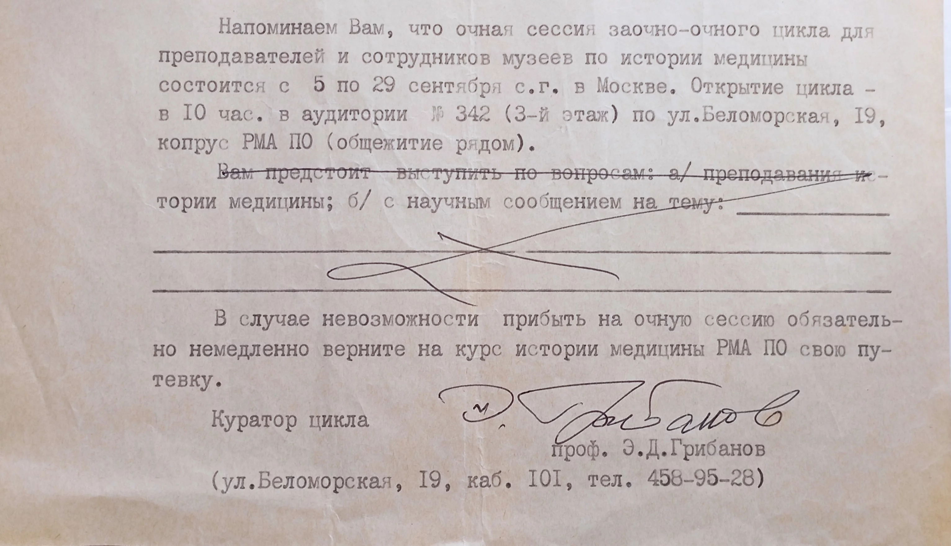 На другой записке было написано:" Вероника Николаевна! Включите в список литературы Писарева Б.П." Из истории земской санитарной организации Московской губернии" М.1949 год и Страшуна И.Д. " Общественная медицина между двумя революциями 1907-1917 г.г. Изд. Медицина М.1962 год. В конце о земской медицине и о подготовке врачей. Кстати о Чехове. " Летом 1901 года в Андреевский санаторий (ныне санаторий имени Чехова) приехал вместе с женой А.П.Чехов. Оборудование санатория было настолько примитивным, что не располагало к спокойному отдыху писателя." Это из книги Карнаухова М.Н. " Башкирский кумыс и кумысолечение." Уфа, 1961 год, стр. 15-19. Проф. Г.В. Архангельский написал статью " Врачебное окружение Чехова", где говорится, что Антон Павлович Чехов в течении своей жизни общался с 222 врачами, и его участок, как земского врача, включал 25 деревень. Статья написана давно. но только сейчас ее хотят опубликовать. Нужно составить список литературы о Чехове".