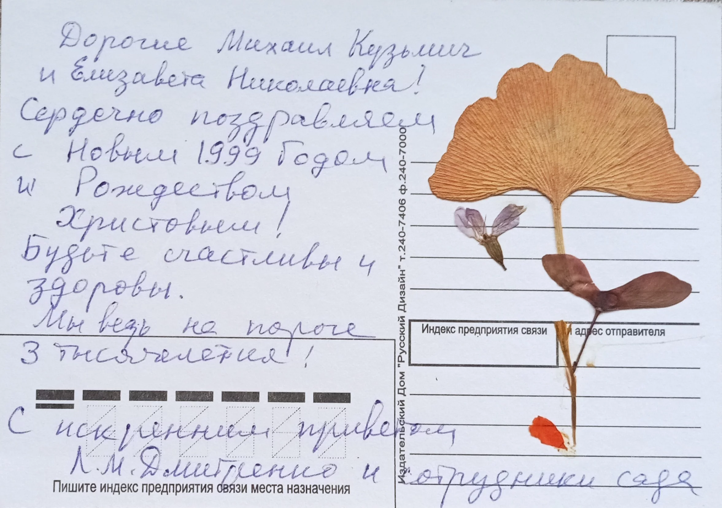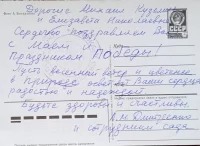 Позже, рассматривая книги, которые Кузьмин М.К. передал для Вероники, она в стихах Юлии Друниной про войну нашла две открытки, адресованные Михаилу Кузьмичу и Елизавете Николаевне из Сочи:
