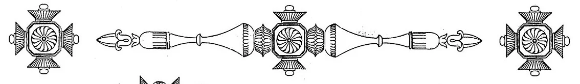 Звенья якорной цепи имеют форму овала. Якорная цепь составляется из 4-12 отрезков, которые собственно и есть и называются смычками. Они и соединяются, в цельное изделие – якорную цепь. Обязательно и всенепременно вся цепная конструкция составляется так, чтобы количество индивидуальных секций составляло нечетное число. Якорная цепь в свою очередь как соединительное звено, связь двух миров; переход из мира земного в вечный мир горний[41]. Связующее звено, как Небо-Земля, День-Ночь, Бог-Человек, Жизнь-Смерть, наконец.