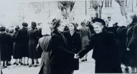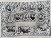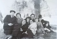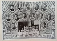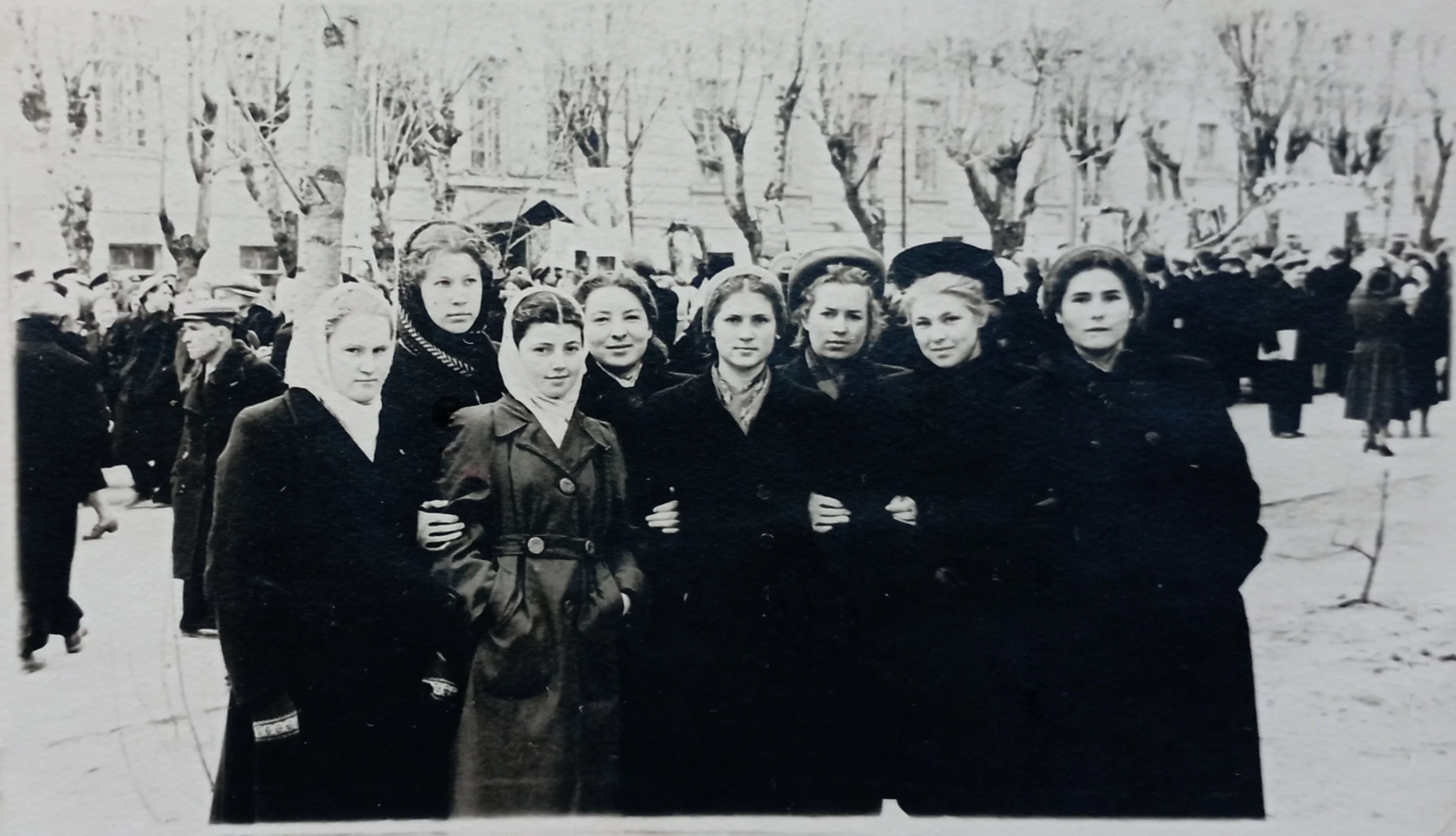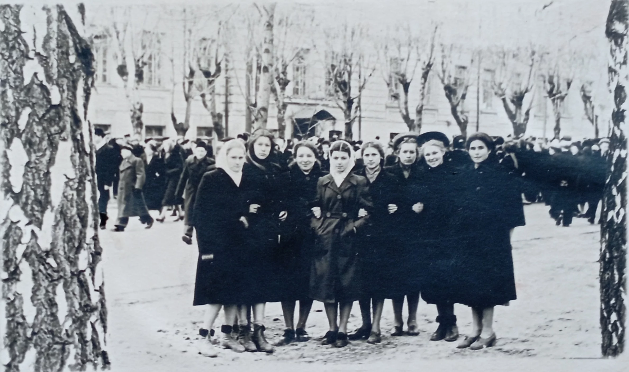 В саду анатомического корпуса Мединститута: Александр Белов , Нина Алексеева, Галя Кравченко (ныне Высоцкая), Таня, Люда Белан, Валя, Алла Бурлаченко, Нина Пименова, Нэля Лопатина, Ида Скалбе