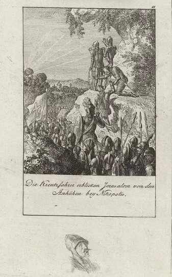 Ключевые вехи: Переправа в Малую Азию (не без конфликтов с византийским императором Алексеем I), взятие Никеи (при поддержке византийцев), долгая и страшная осада Антиохии (1097-98), которая едва не погубила всё войско, и, наконец, победа над сельджукским атабегом Мосула в битве при Аскалоне.