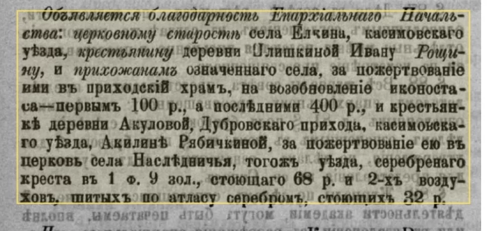 Из истории Никольской церкви села Дубровка и Акулова Касимовского уезда Рязанской губернии