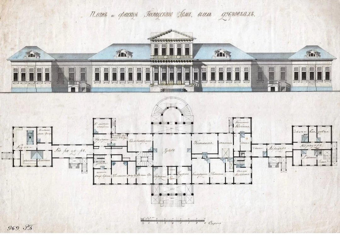 5. На выставке "История усадьбы,которой нет"в Касимовском-историко-культурном музее-заповеднике представлена копия плана господского дома, выполненного при владельце усадьбы Сергее Ивановиче Голицыне. Согласно плану дом был двухэтажный с подвальными помещениями и разделен. условно, на три основные части. В центральной части были комнаты княгини Мавры Ивановна Приклонской, комнаты княжон: Прасковьи, Варвары, Натальи. проходная, рисовальная, зал, чулан, передняя, гостиная, буфет, спальная, кабинеты князя и княгини. У Сергея Ивановича было пять сыновей и четыре дочери. После смерти Сергея Ивановича имение было передано второму сыну Василию Сергеевичу Голицыну.
