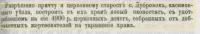 Дубровский Приходской Комитет о беженцах ч. есть имеет сообщить Уездному Комитету, что по местному осмотру членами Правления Комитета квартир для устройства беженцев оказалось в приходе села Дубровок 31 квартира, в коих может быть помещено 75 человек беженцев. Сбор "ковша нового урожая" Приходским комитетом производится.