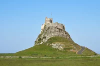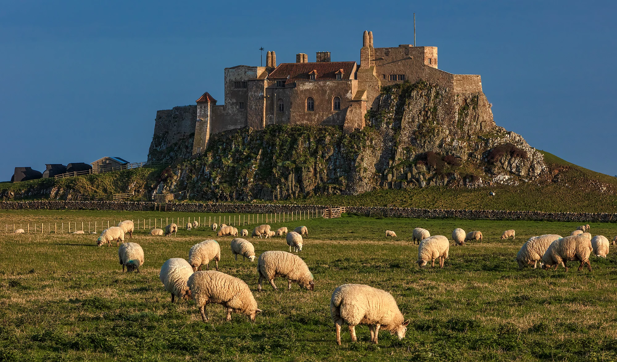 Замок Линдисфарн находится на Святом острове в графстве Нортумберленд