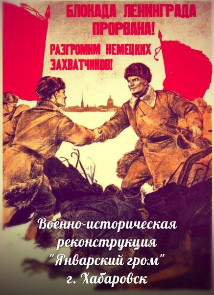 | Уважаемые жители и гости г. Хабаровска! Военно-исторический клуб им. Героя Советского Союза Дикопольцева Е.А. приглашает всех желающих на военно-историческую реконструкцию "Январский гром", посвященную 70-й годовщине снятия блокады Ленинграда. Вы сможете погрузиться в грозный январь 1944 года - увидеть реконструкцию боевого эпизода, форму, снаряжение, вооружение и быт солдат того времени. |