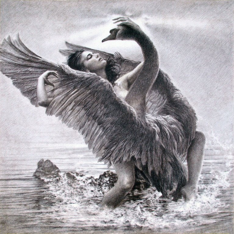 ТАНЕЦ ЛЕБЕДЯ И ЛЕДЫABRAXASСолнце золотое блещет,Ярки небеса. Леда стонет и трепещет, Закатив глаза. По челу ее струится Благовонный пот. Белокрылый лебедь-птица Ей пронзает плоть. Он ласкает Леде груди И волнует пруд. Этот танец после люди "Танго" назовут. |