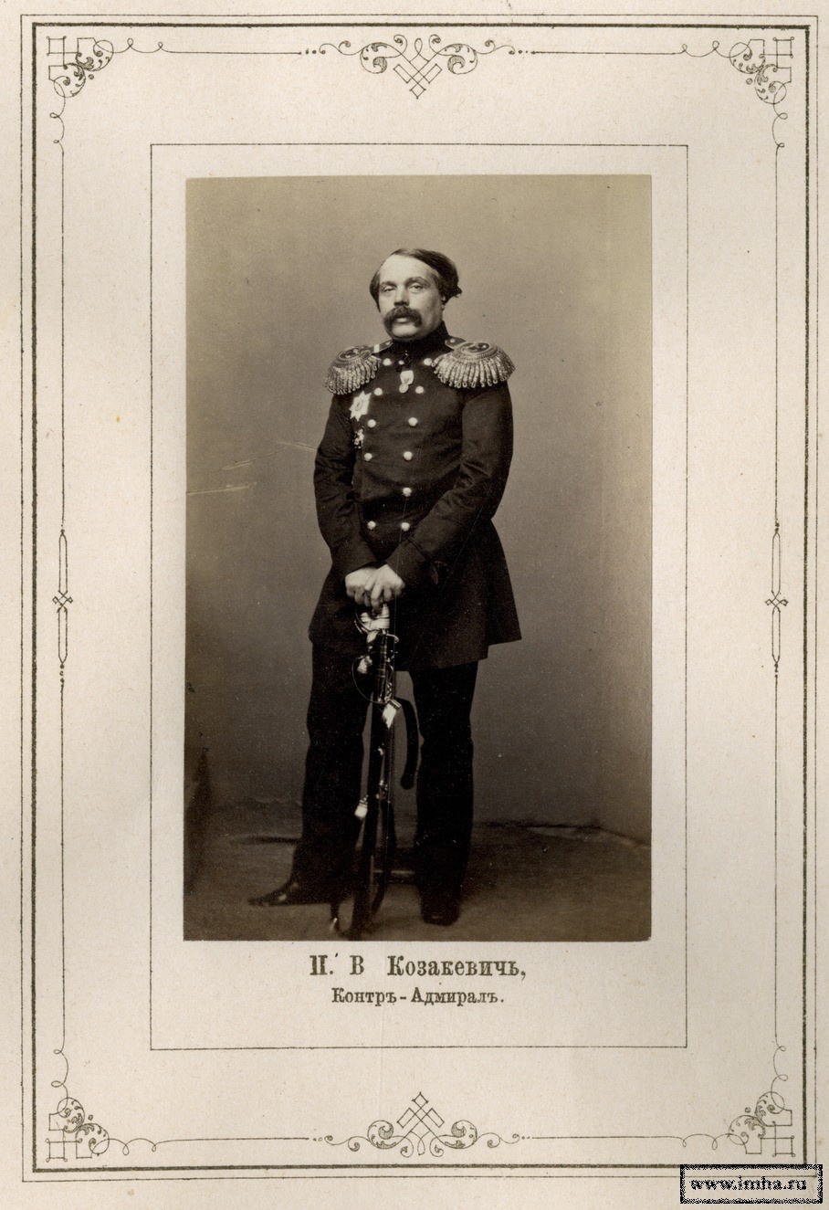 Козакевич Петр Васильевич (1816-1887), адмирал, генерал-адъютант, исследователь Дальнего Востока, губернатор Приморской области, военный губернатор Кронштадта. 1864-1865. Фото: Деньер, Генрих Иоганн. 8,9х5,4; 23,9х17,7 см. |
