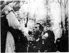 И вообще, головокружительные успехи армий Третьего рейха летом 1941 г. невозможно объяснить без учета той "подготовительной работы», которую проделали русские диверсионные подразделения. К тому же "белые» русские со своим бескомпромиссным антибольшевицким пылом и воодушевлением выгодно выделялись на фоне германцев, которые, в массе своей, психологически оказались к такой форме войны, которую та приняла на Востоке. То, что ожидало их в Совдепии, далеко превзошло все "страшилки» знаменитой геббельсовской пропаганды. Так, например, при продвижении линии фронта все дальше на восток энкаведисты расстреливали всех узников советских тюрем,а то и попросту взрывали или жгли тюрьмы вместе с заключенными, так что, вступая в города, германцам приходилось обонять ужасный смрад горелой человечьей плоти. Лейтмотив писем германских солдат в далекий "фатерланд» был один: "Мы здесь, как в аду». Ведомство доктора Геббельса даже распорядилось не сообщать населению Третьего рейха о подобных фактах, опасаясь, что подобная информация может быть воспринята немцами как ложь или преувеличение, подорвав тем самым доверие к министерству пропаганды.