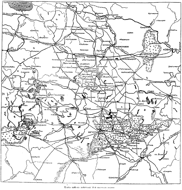 Задача 10-й армии, составлявшей крайний правый фланг русского фронта, заключалась в прикрытии со стороны Восточной Пруссии сообщений на Петроград и Москву главных сил Северо-западного фронта, стоявших с ноября 1914 г. на левом берегу р. Вислы, западнее Варшавы и Ивангорода.