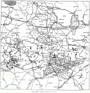 Фронт полка (схема 2) около 7,5 км тянулся неправильной линией от д. Грюнвейчен по высотам западнее д. Сургупхен, [6] Шмулькен, подходил затем к р. Роминта против д. Самелюкен, далее перекидывался на левый берег этой быстрой речки (до 10 м шириною) и оканчивался против Д. Альт Майгунишкен.