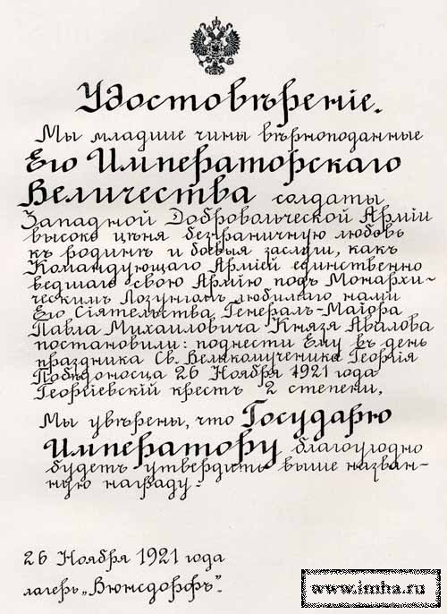 Все заполнившие улицы люди, как загипнотизированные, не могли оторвать своих взоров от князя Авалова. Его фигура старого кавалериста была затянута в багряно-красную черкеску с газырями слоновой кости на груди, на которой, подобно черной звезде, сиял мальтийский крест, и сверкали два Георгиевских креста за храбрость. А на плече его, как и у всех его людей, виднелся белоснежный русский православный крест с поперечными перекладинами – священный символ его армии. Рядом с ним, лишь на полшага позади, шагал его телохранитель, огромного роста черноусый кавказец, с перекинутой через руку темной буркой князя и сверкающим кинжалом на чеканном поясе.