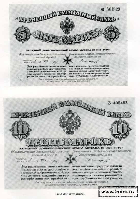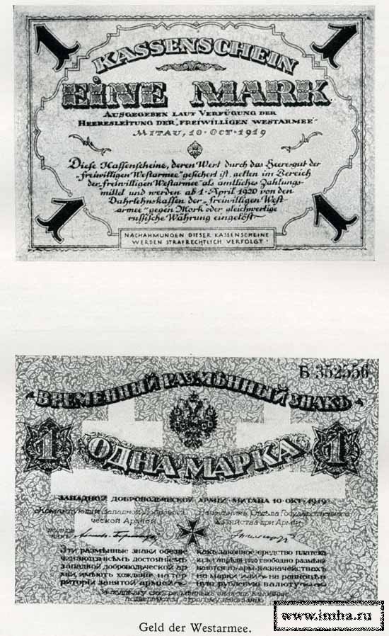 С этого момента все германские добровольцы в Прибалтике стали носить на рукаве эмблему белой русской Западной добровольческой армии – восьмиконечный православный крест из серебряного галуна (у офицеров) или из белого сукна (у нижних чинов), а на головных уборах – овальную русскую кокарду (немецкие добровольцы с грубоватым солдатским юмором называли ее за размер и форму "большая вошь» ). Некоторые из них, впрочем, продолжали носить на тульях фуражек, над русской кокардой (прикрепленной к околышу, на месте прежней "земельной кокарды» ), свою прежнюю черно-бело-красную "имперскую» кокарду кайзеровской армии, которая в самой Германии к этому времени была уже запрещена и заменена новой черно-красно-золотой республиканской кокардой – так называемой "еврейской кокардой» цветов нового германского флага.
