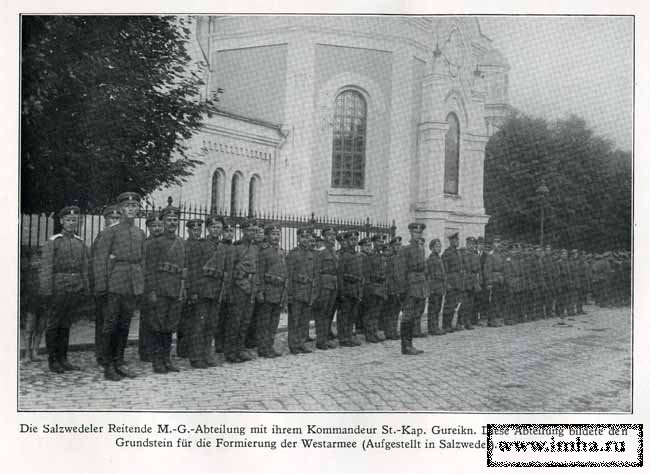 Пример Меркера оказался "заразительным». В течение декабря 1918 года в окрестностях Берлина, при участии капитана Курта фон Шляйхера (будущего генерала райхсвера и имперского канцлера, заигрывавшего с профсоюзами и убитого эсэсовцами Генриха Гиммлера в "ночь длинных ножей» 30 июня 1934 года), были сформированы полк "Потсдам» (командир – майор фон Штефани), добровольческий корпус Гельда (командир – генерал фон Гельд), добровольческий корпус Гюльзена (командир – генерал фон Гюльзен), Германская охранная дивизия генерала фон Висселя, Государственный стрелковый корпус генерал-майора Редера и добровольческий корпус генерала фон Люттвица. Большинство этих добровольческих структур было сформировано на базе прежних регулярных армейских частей. Сохранившийся в качестве "обломка старорежимной реакционной кайзеровской армии» кадр Гвардейской кавалерийской стрелковой дивизии (под командованием генерала фон Гофмана) был переведен из столицы в пригород Берлина Тельтов и доукомплектован добровольцами. Сходным образом были реорганизованы 17-я и 31-я пехотные дивизии прежней кайзеровской армии.