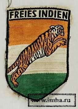 На стальных касках германского образца, которые носили индийские добровольцы, был сбоку изображен шафранно-бело-зеленый национальный щиток (при этом полосы индийского "триколора" были, в отличие от нарукавного щитка, нарисованы по диагонали). Индийские легионеры носили обмундирование вермахта (входившие в состав Легиона мусульмане и сикхи – с традиционными тюрбанами вместо пилоток, фуражек или кепи). В период своей службы в вермахте индийцы носили эмблему германского орла со свастикой над правым нагрудным карманом, в период службы в СС – эсэсовский вариант орла со свастикой на левом плече. Черные петличные знаки индийских эсэсовцев были украшены стилизованными изображениями головы тигра, вышитой серебряной канителью. Об их боевом пути мы подробней расскажем несколько ниже.