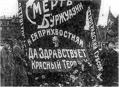 Пьяная матросня, по выражению большевицкого барда Владимира Маяковского, "прикладами гнавшая седых адмиралов» в море "с моста в Гельсингфорсе", творила свои злодеяния под стягом с черепом и костями со сходной надписью "Смерть буржуям".