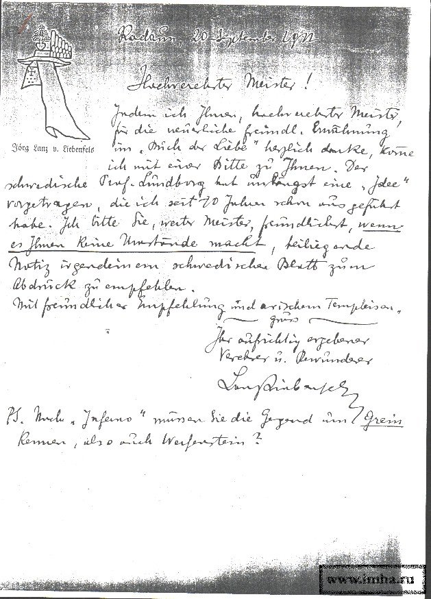 Вот только миссию исторических храмовников приор Верфенштайнского Дома барон Йорг Ланц фон Либенфельз (сам в прошлом монах-цистерцианец) понимал весьма своеобразно – как стремление к созданию арийско-германского орденского государства, в состав которого должны были со временем войти все страны Средиземноморского бассейна и Среднего Востока!