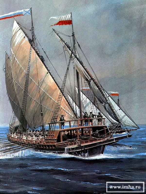 | В России Гребной флот, как часть регулярной военно-морской силы, был создан Петром Великим, но лихие набеги на Византию и берега "Русского" (Черного) моря производились славянами уже в IX в. на флотилиях гребных, однодеревных, набойных лодок, поднимавших до 50 чел. ... |