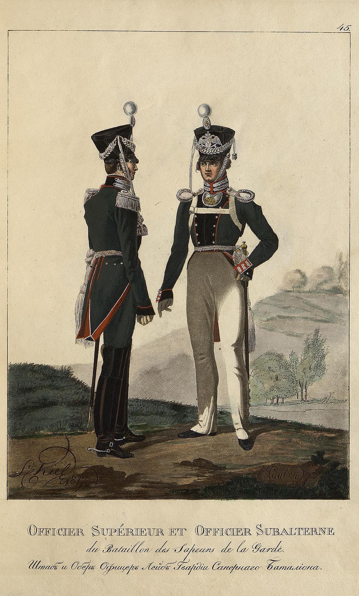 1812 При сформировании Лейб-Гвардии Саперного батальона, из отборных чинов Пионерных полков в состав его вошли главным образом отличившиеся в войнах с Франциёю в 1805—1807—1808 —1809 и 1812 гг.